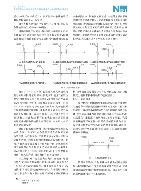 当换能器位于与复合材料声阻抗相差很大的夹 照波形特征可将夹杂缺陷分为底波消失型和底波存在