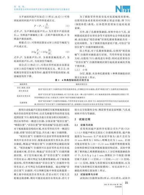 大平面的回波声压如式( 1 ) 所示, 由式( 1 ) 可得 为了排除 零 件 厚 度 变 化 对 底 波 幅 度 的 影 响,