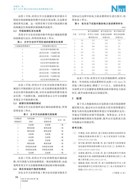 域进行可疑故障区定位时, 对无故障的航拍图像均 分说明文中方法能够显著降低试验对象的电力波动