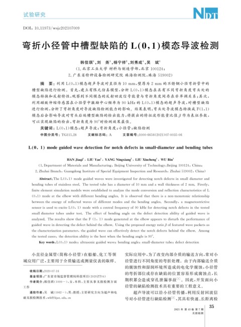 磁无损检测技术, wb@b j ut.edu.cn 号对小径管进行缺陷检测 [ 2 ] , 其具有快速、 长距离检