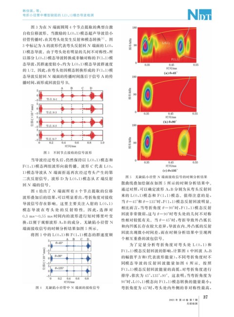 3中标记为 A 的波形代表弯头反射回 N 端面的 L ( 0 ,