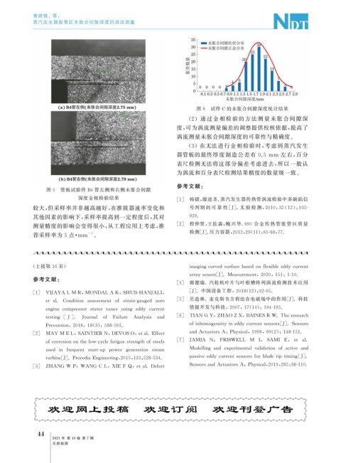 深度金相检验结果 [ 1 ] 韩捷, 廖述圣 . 蒸汽发生器传热管涡流检验中多缺陷信