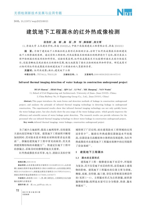高 [ 1 ] 。渗漏是建筑地下工程中常见的病害, 其关系 热成像技术在建筑地下工程漏水检测中的应用提供