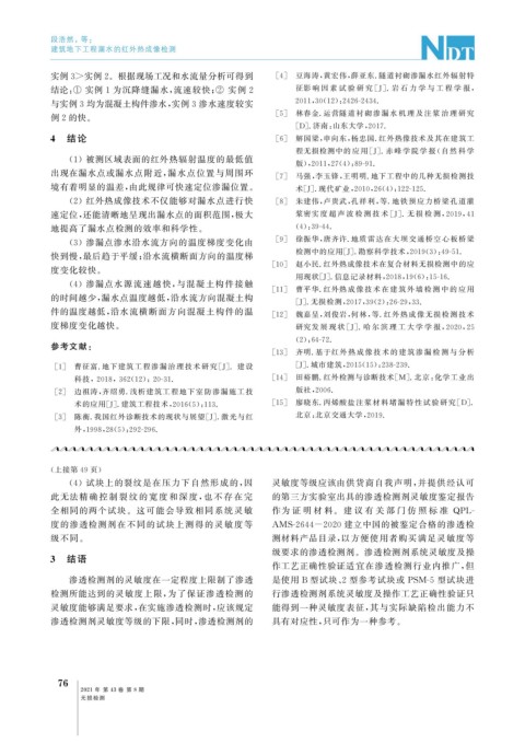 ( 2 )红外热成像技术不仅能够对漏水点进行快 [ 8 ] 朱建伟, 卢贵武, 孔祥利, 等 . 地铁预应力桥梁 孔 道 灌