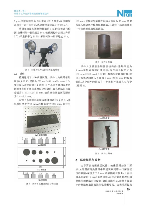 图3 长脉冲红外无损检测系统外观 5mm , 涂层 表 面 用 白 漆 涂 抹, 构 件 的 几 何 尺 寸 为