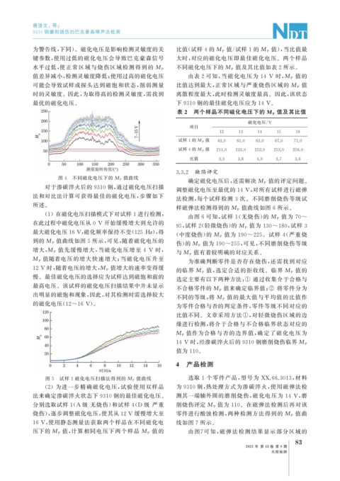 烧伤), 逐步调整磁化电压, 使其从12V 缓慢增大至 零件进行酸蚀检测, 两种检测方法得到的 M P 值曲