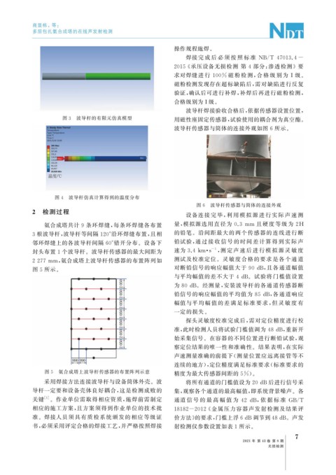 邻环焊缝上的各波导杆间隔 60° 错开分布。设备下 铅试验, 通 过 接 收 信 号 的 时 间 差 计 算 得 到 实 际 声
