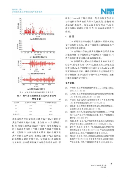 其内部存 在 点 状 缺 陷, 推 测 定 位 信 号 与 点 状 缺 陷 [ 8 ] 陶元宏, 关卫和, 李剑 . 多层包扎式尿素合成塔声发射