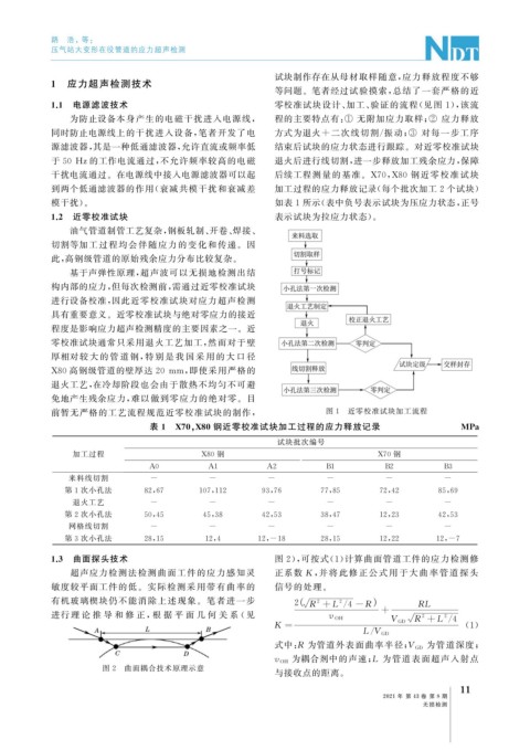 1.3 曲面探头技术 图 2 ), 可按式( 1 ) 计算曲面管道工件的应力检测修