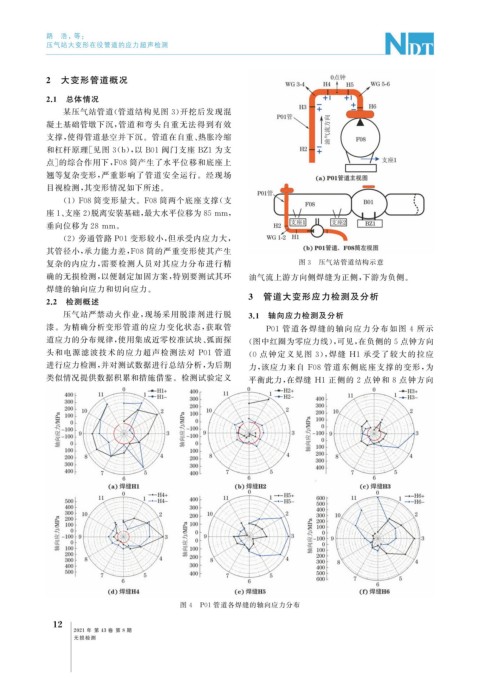 类似情况提供数据积累和措施借鉴。检测试验定义 平衡此力, 在焊缝 H1 正侧的 2 点钟和 8 点钟方向