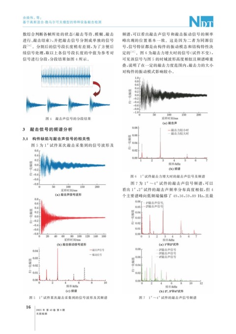 段 [ 14 ] 。分割后的信号段长度稍有差别, 为了方便后 号, 信号特征都是由构件的振动模态和结构特性决