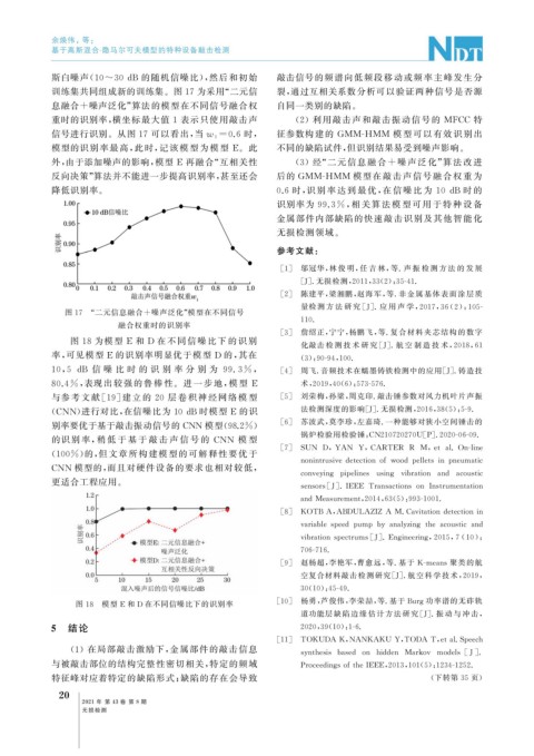 模型的识 别率最高, 此时, 记 该 模 型 为 模 型 E 。此 不同的缺陷试件, 但识别结果易受到噪声影响。