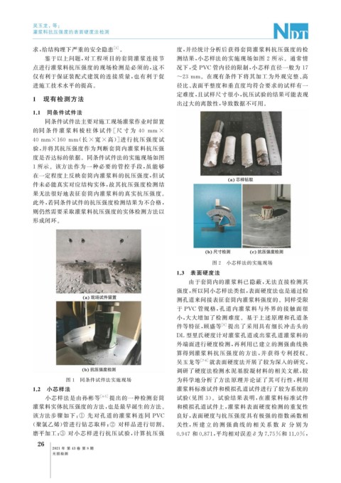 点进行灌浆料抗压强度的现场检测是必须的, 这不 况下, 受 PVC 管内径的限制, 小芯样直径一般为 17