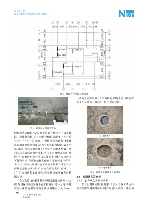 面, 尽量保证冲击装置垂直于检测面; 另一方面, 保证 经3次现场检测, 得到第 17 层 6 个剪力墙构件