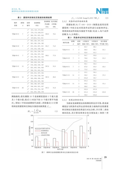 ( 即表2中的表面硬度代表值), 再依据式( 2 ) 计算 为验证表面硬度法的检测结果是否可靠, 将表面