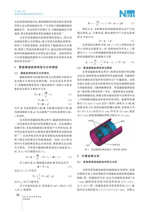 式中: 为空气磁导率。 5mm , 缺 陷 深 度 设 置 为 管 道 壁 厚 的 20% , 40% ,