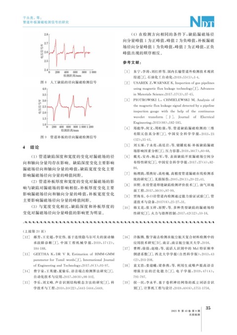 ( 2 )管道补板厚度和宽度的变化对漏磁场的影 统的研究[ J ] . 无损探伤, 2005 , 29 ( 1 ): 20-22 , 41.
