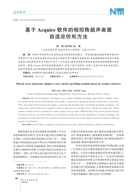 合材料、 大型复杂构件的检测中应用广泛 [ 1 ] 。相控 曲面试件时, 部分超声成像算法( 如全聚焦成像和平