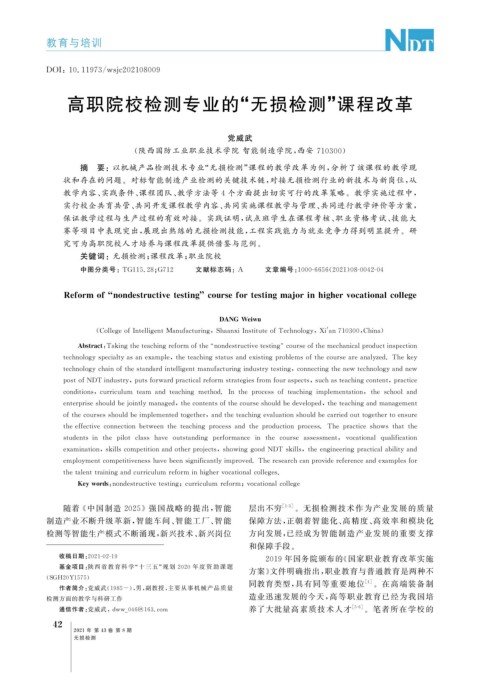 Ke ywords : nondestructivetestin g ; curriculumreform ; vocationalcolle g e
