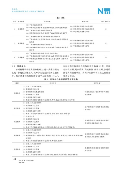在对标课程教学大纲的基础上, 进一步推动理论 有射线检测、 超声检测、 涡流检测、 磁粉检测、 渗透检
