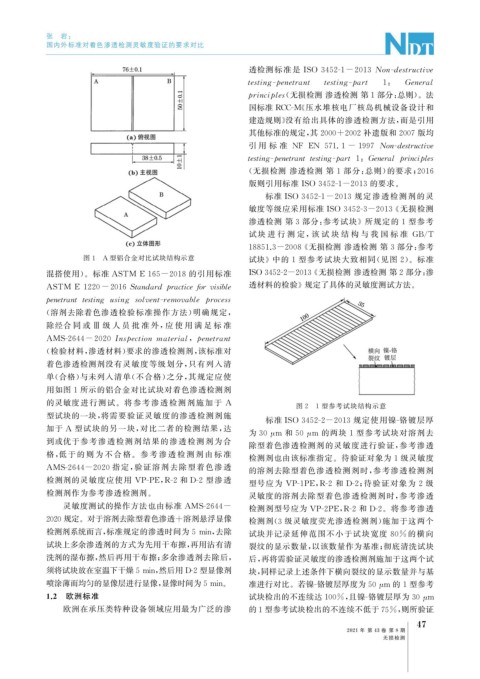 欧洲在承压类特种设备领域应用最为广泛的渗 的1型参考试块检出的不连续不低于75% , 则所验证
