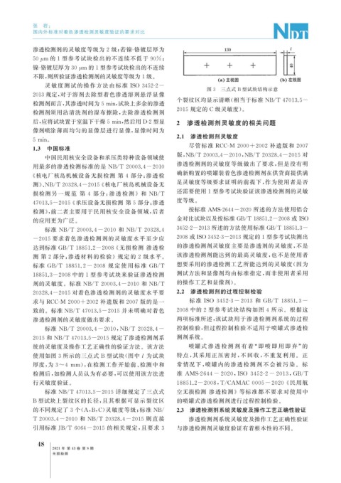 引用标准 JB / T6064-2015 的相关规定, 且要求 3 与渗透检测剂灵敏度验证有着根本性的不同。