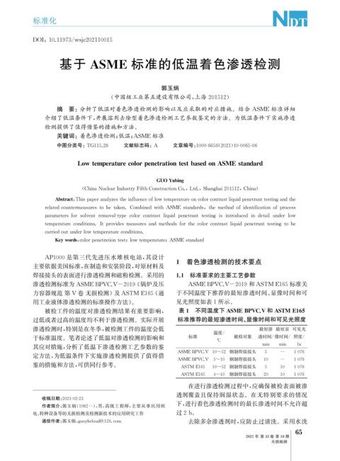 Ke ywords : color p enetrationtest ; lowtem p erature ; ASMEstandard