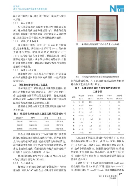 3.3.1 A , B试块法 B试块在-3~0℃ , 渗透时间分别为15 , 20min