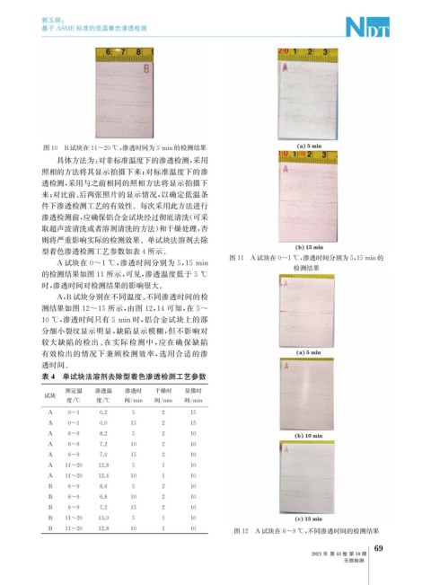 B 11~20 12.8 10 1 10 图12 A 试块在6~9℃ , 不同渗透时间的检测结果