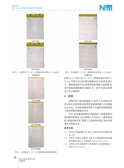 [ 3 ] 肖仲谊, 汪扬. 低温条件下渗透检验工艺改进措施[ J ] .