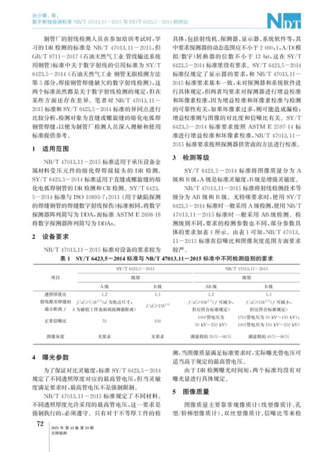 数字射线检测标准 NB / T47013.11-2015与 SY / T6423.5-2014的对比