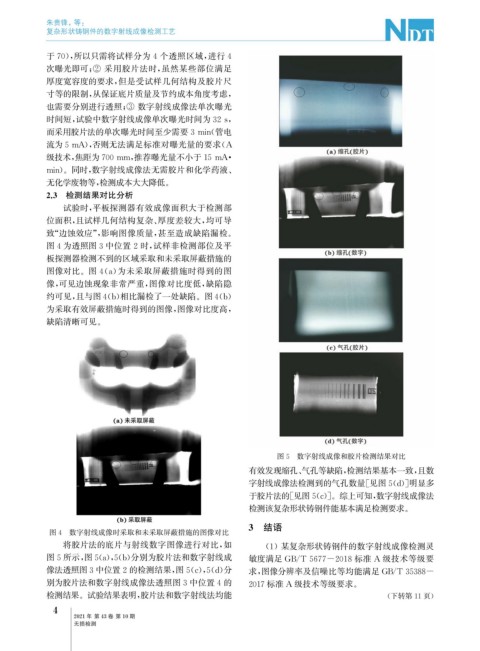 检测结果。试验结果表明, 胶片法和数字射线法均能 ( 下转第11页)