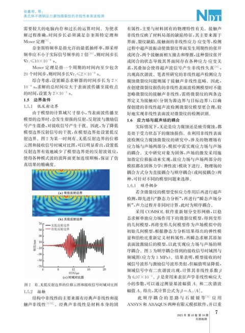 图2 有、 无低反射边界的位移云图和接收信号时域对比图 小的参数, 可以通过测量基波幅值 A 1 和二次谐波