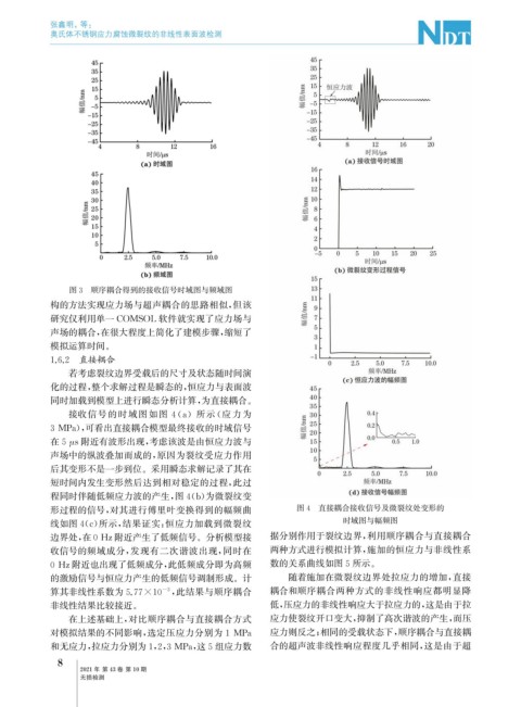 线如图4 ( c ) 所示, 结果证实: 恒应力加载到微裂纹 时域图与幅频图