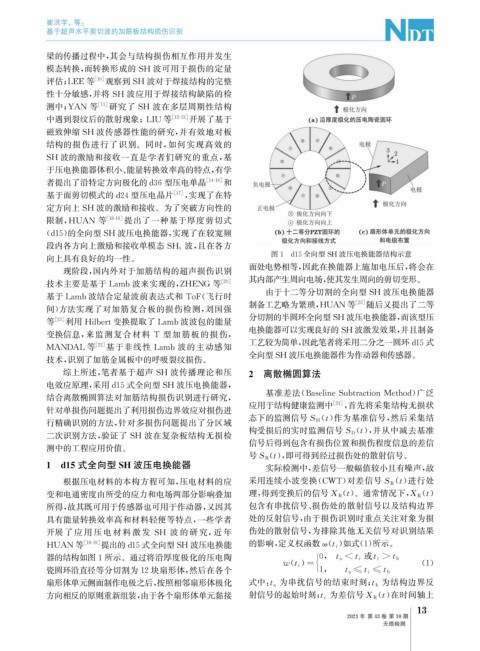 开展 了 应 用 压 电 材 料 激 发 SH 波 的 研 究, 近 年 伤处的散射信号, 为排除其他无关信号对识别结果