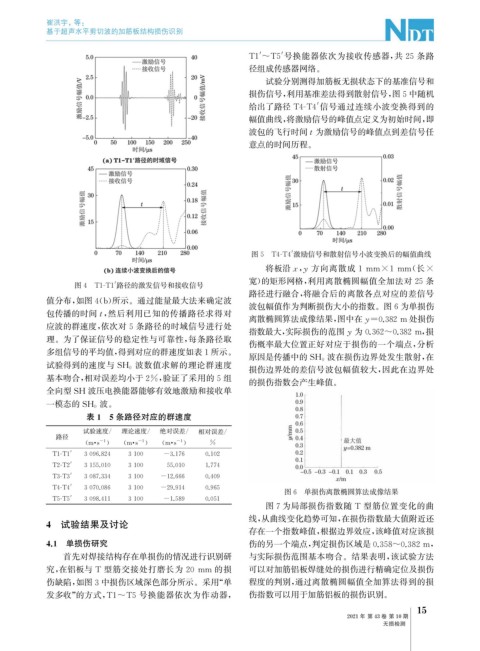发多收” 的方式, T1~T5 号换能器依次为作动器, 伤指数可以用于加筋铝板的损伤识别。