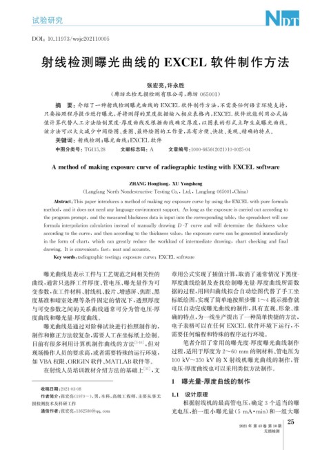 关键词: 射线检测; 曝光曲线; EXCEL软件