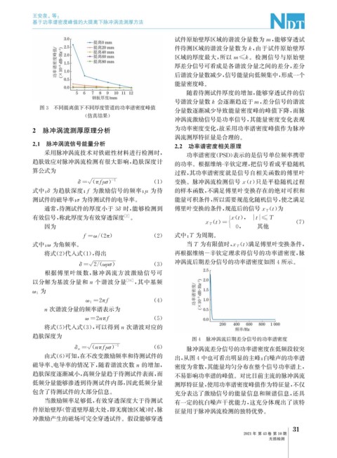 2 脉冲涡流测厚原理分析 为功率密度变化, 故采用功率谱密度峰值作为脉冲