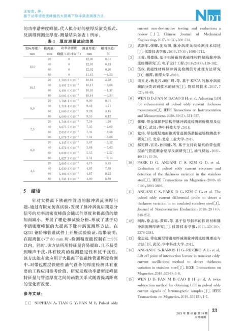 的功率谱密度峰值, 代入拟合好的壁厚反演关系式, current non-destructive testin g and evaluation : a