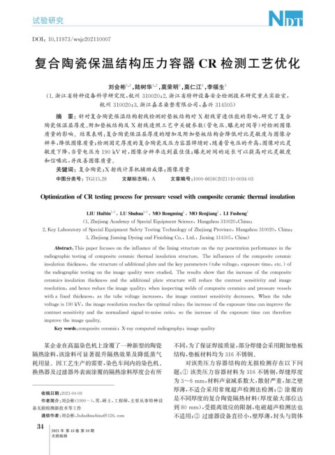 O p timizationofCRtestin gp rocessfor p ressurevesselwithcom p ositeceramicthermalinsulation