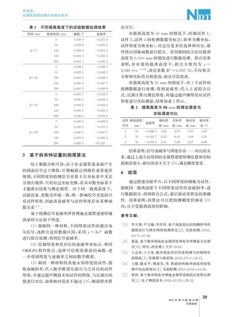 ( 3 )取同一种材料的其他未知厚度的试件, 提 [ 4 ] 王健, 滕永平, 傅迎光, 等. 铁磁材料脉冲涡流厚度检