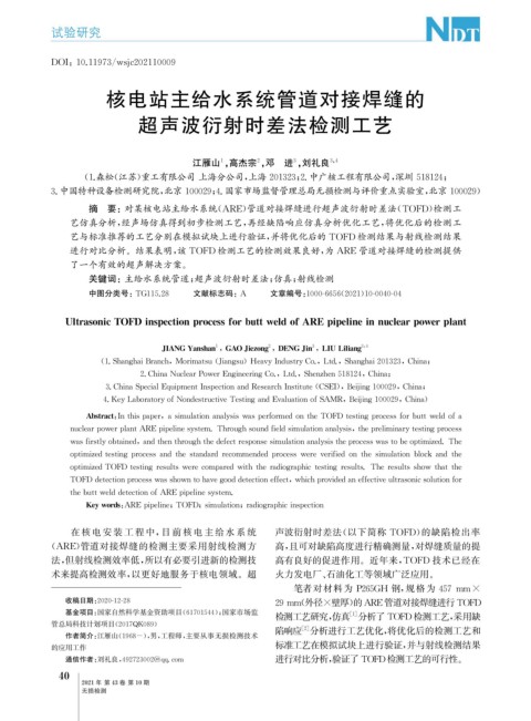 UltrasonicTOFDins p ection p rocessforbuttweldofAREp i p elineinnuclear p ower p lant