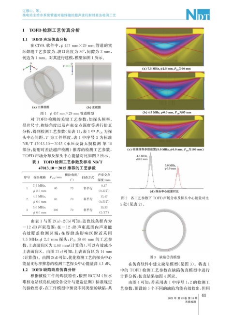 能量比标准推荐的检测工艺探头中心能量高4.1dB 。 在仿真软件中建立缺陷模型( 见图3 )。将表1