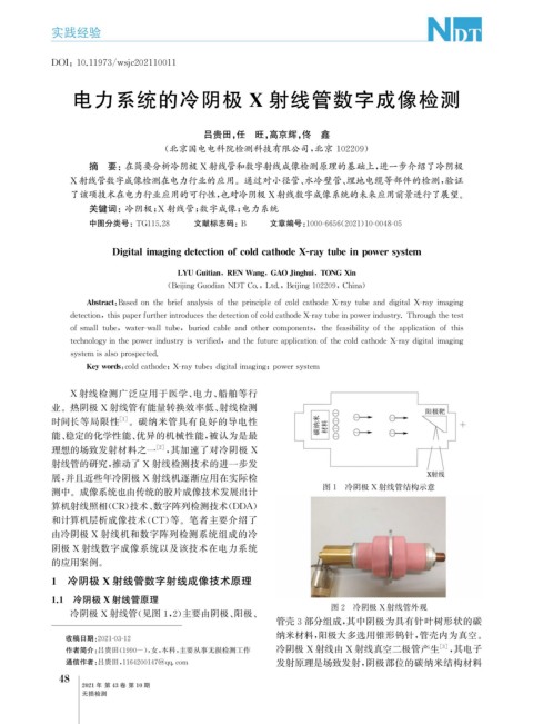 关键词: 冷阴极; X 射线管; 数字成像; 电力系统