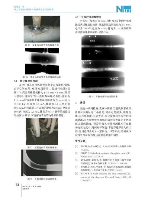 160kV , 电流为0.5mA , 脉宽为0.1s , 获得的成像结 检测可以满足电厂小径管、 高压电缆接头、 埋地电