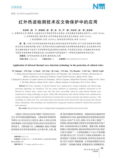 A pp licationofinfraredthermalwavedetectiontechnolo gy inthe p rotectionofculturalrelics