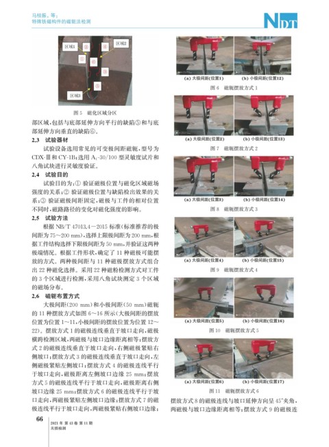 22 )。摆放方式1的磁极连线垂直于坡口走向, 磁极 图10 磁轭摆放方式5