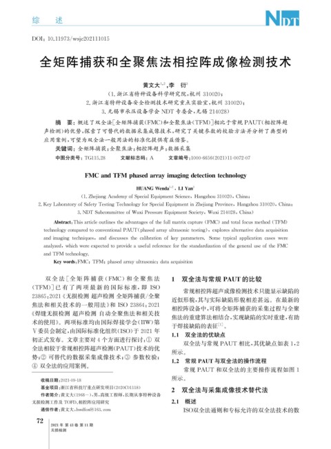 摘 要: 概述了双全法[ 全矩阵捕获( FMC ) 和全聚焦法( TFM )] 相比于常规 PAUT ( 相控阵超