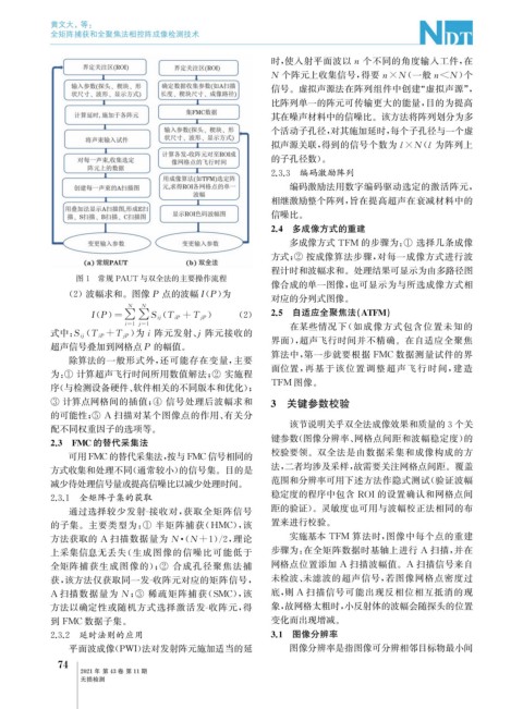 I ( P ) = ∑∑ S i j T iP +T j P ) ( 2 ) 2.5 自适应全聚焦法( ATFM )