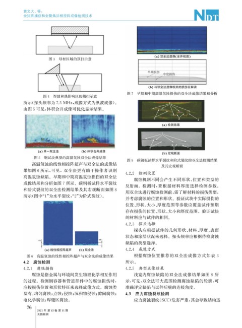 高温氢蚀的线性相控阵超声与双全法的成像结